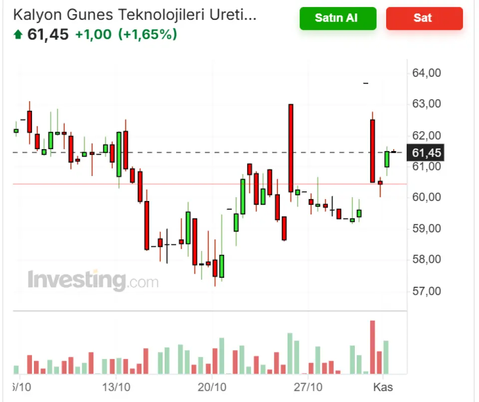 Böylece Kalyon Güneş Teknolojileri Üretim A.Ş. (KLYPV) 3 Kasım 2025 tarihli KAP bildiriminde, güneş enerjisi panellerinin satışına ilişkin sözleşme imzalandığını kamuoyu ile paylaşmış oldu.