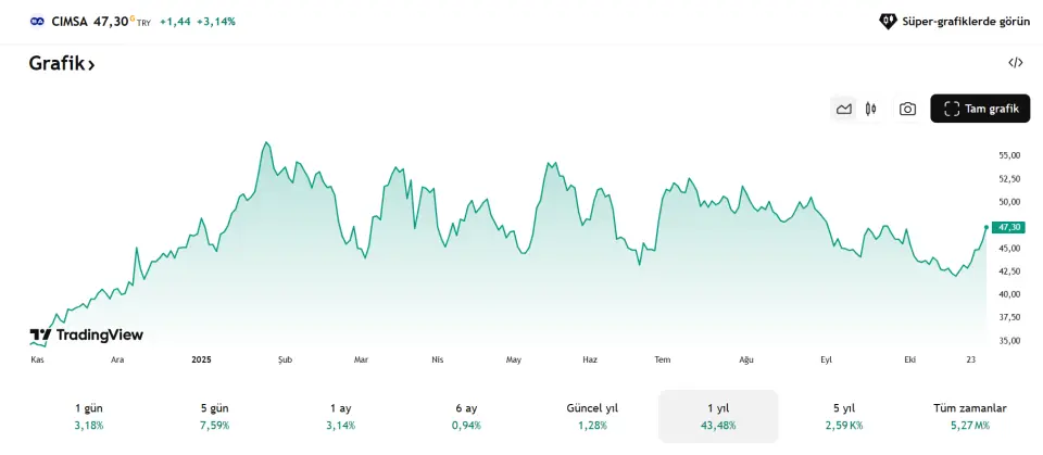 Kısa vadede tablo pek iç açıcı olmasa da uzun vadeye bakıldığında şirketin performansı çok daha iyi görünüyor. Çimsa son 1 yılda yaklaşık %43 getiri sağlamayı başardı. Yani yatırımcılarının parasını neredeyse 1.43 katına çıkarmış oldu.
