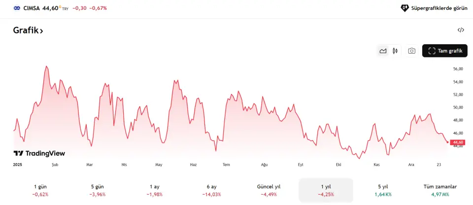 Kısa vadeli baskıya rağmen uzun vadede görünüm görece daha dengeli. Çimsa hissesi, son 1 yıllık dönemde yaklaşık %4 oranında getiri sağlamayı başardı. Bu performans, hissede uzun vadeli kalan yatırımcılar açısından sınırlı da olsa olumlu bir tablo sunuyor.