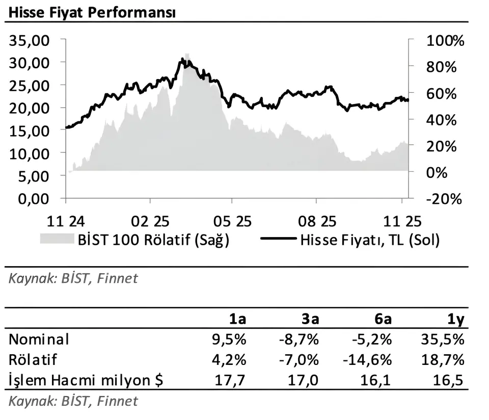- "Finansal açıdan şirket, güçlü karlılık üretme kapasitesini sürdürmektedir. 2025 yılı 3. çeyrek sonu itibarıyla Şirket’in 12,180 milyon TL net nakit pozisyonu bulunmaktadır. Enflasyon muhasebesi uygulanmış finansallara göre 2022–2024 döneminde gelirlerini %8,1 yıllık bileşik büyüme oranı (YBBO) ile artıran şirketin, 2025-2030 tahmin döneminde de %17,9 YBBO ile istikrarlı büyümesini sürdüreceğini öngörmekteyiz. Özellikle Türkiye’nin kentsel dönüşüm gündemi ve kamu kaynaklı altyapı yatırımlarının büyüme trendini destekleyeceğini öngörüyoruz."