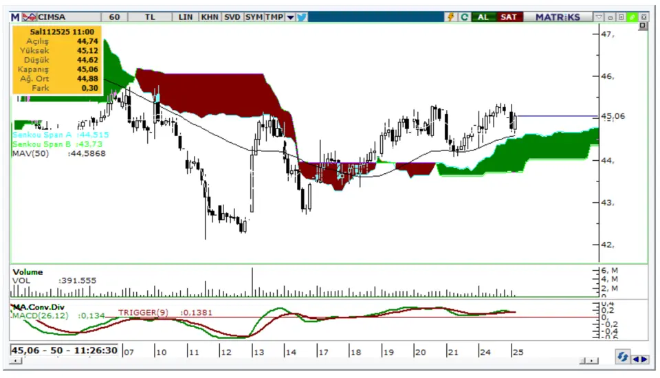 nedeniyle CIMSA hissesinde 45,58TL ve daha sonra 45,98TL seviyelerine doğru yükseliş kaydedilebilir.