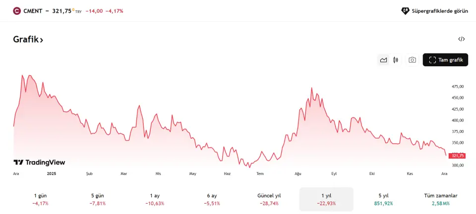 Çimento şirketinde 1 yılda %22 değer kaybı şok yarattı!