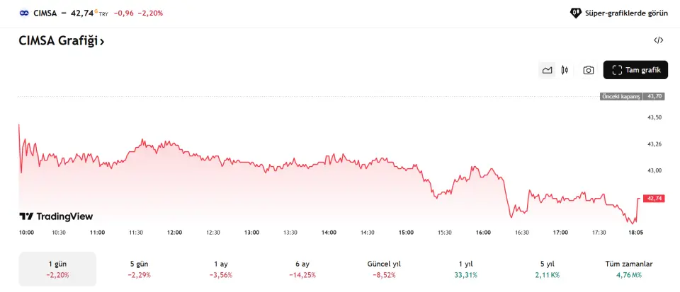 Kısa vadede tablo pek iç açıcı olmasa da uzun vadeye bakıldığında şirketin performansı çok daha iyi görünüyor. Çimsa son 1 yılda yaklaşık %33 getiri sağlamayı başardı. Yani yatırımcılarının parasını neredeyse 1.33 katına çıkarmış oldu.