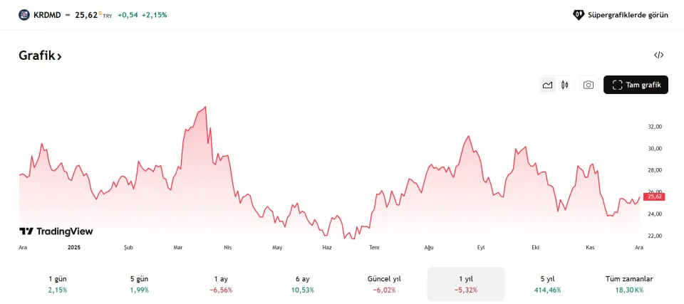 Şirketin 1 yıllık performansı da çok farklı görünmüyor. Kardemir bu süreçte neredeyse aynı seviyelerde kalmış durumda.