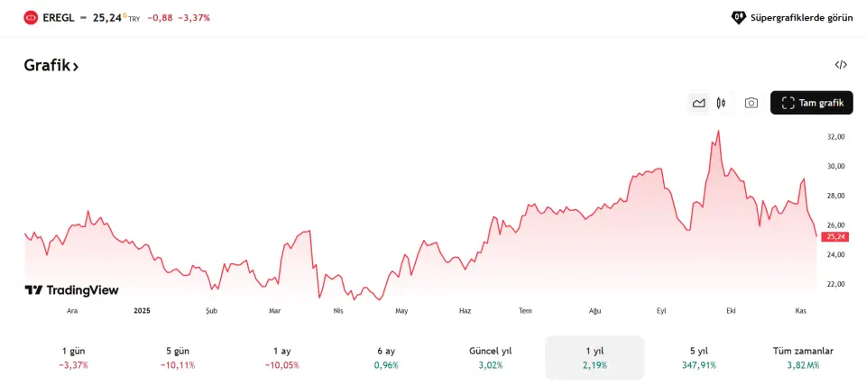Kısa vadede de durum pek farklı değil. Şirket hissesi son iş gününde %3 değer kaybederek yatırımcıların moralini biraz daha bozdu. Bu düşüş, “Ereğli neden bir türlü toparlanamıyor?” sorularını da yeniden gündeme getirdi.