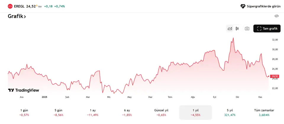 Şirketin son 1 yıllık grafiğine bakıldığında tablo çok da iç açıcı değil. Ereğli bu süreçte yatırımcısına %5 oranında kayıp yaşatmış durumda. Yani bir yıldır hissede kalan yatırımcı aslında reel anlamda zarar etmiş sayılıyor. Banka faizlerinin %50 civarında olduğu bi ortamda bu tablo haliyle hiç tat vermemiş.
