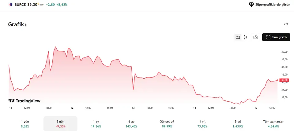 Burçelik’in son 1 yıldaki performansı ilk bakışta olumlu görünüyor. Hisse bu dönemde yaklaşık %73 değer kazandı. Ancak uzun süredir elinde tutan yatırımcıların büyük kısmı hâlâ temkinli; çünkü hisse uzun dönemli grafiklerde zaman zaman yatay bir görünüm veriyor. Sosyal medyada en çok konuşulan başlıklardan biri de şu: