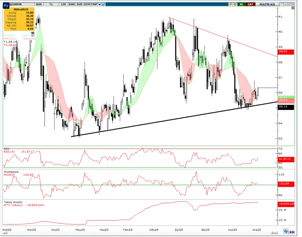 nedeniyle ISDMR hissesinde 36,70TL ve ardından 37,10TL seviyelerine doğru yükseliş söz konusu olabilir.