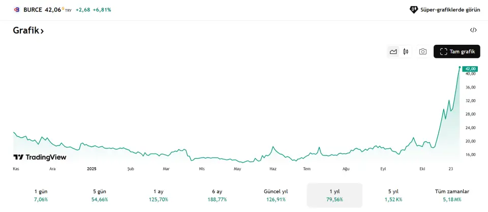Rakamlar da dikkat çekici. Son 1 ayda %126 kazandıran Burçelik hissesi son 5 günde ise %55’lik bir yükseliş performansı gösterdi. Bu sert çıkış yatırımcıyı heyecanlandırsada birçok kişi hâlâ temkinli davranıyor.