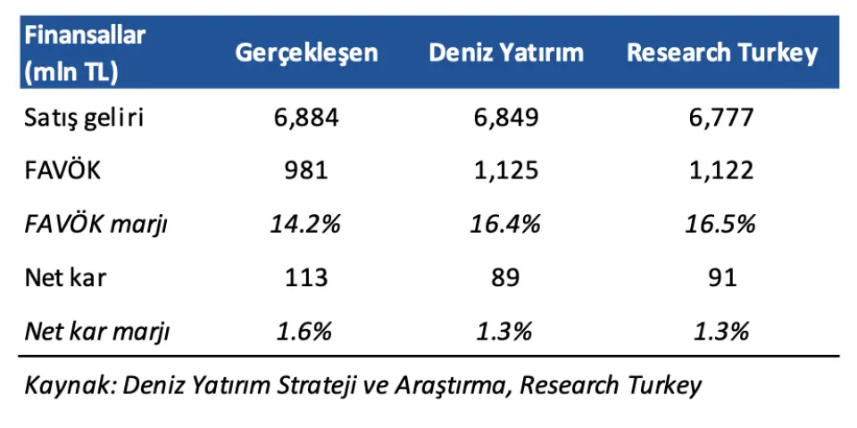 "FAVÖK 3. çeyrekte senelik %10 azalışla 981 milyon TL seviyesinde gerçekleşirken, FAVÖK marjı 4,4 puan azalışla %14,2 oldu. Brüt karlılıktaki artışın ciroya kıyasla geride kalmasıyla birlikte, yıllık bazda %32 artış gösteren faaliyet giderleri FAVÖK marjındaki baskılanmada etkili oldu."