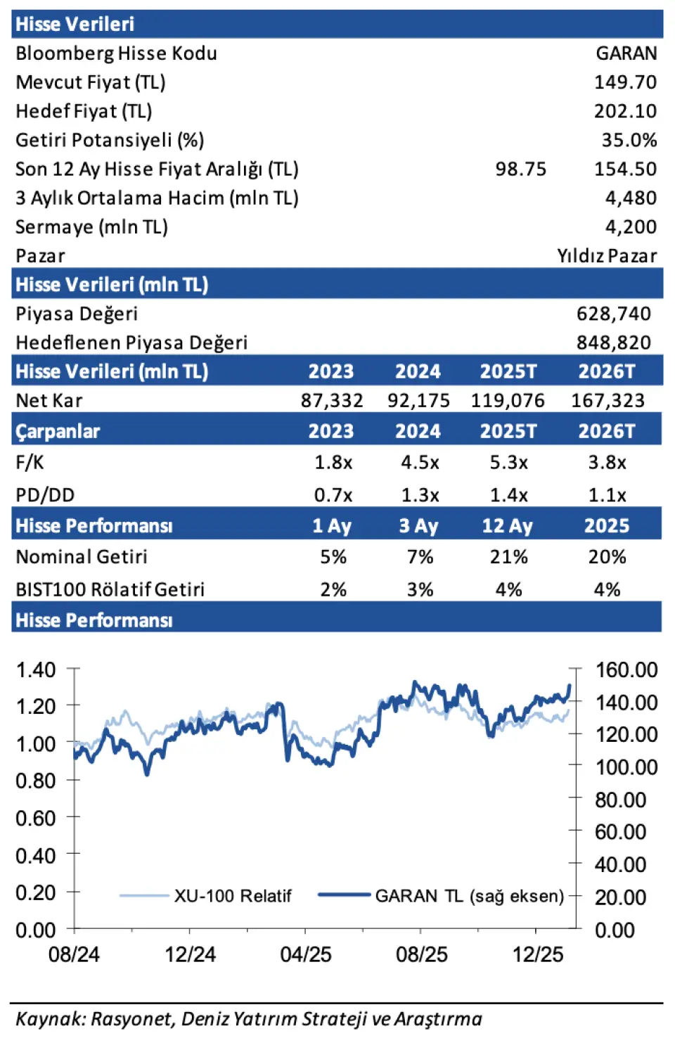 Deniz Yatırım GARAN Hedef Fiyat 2026