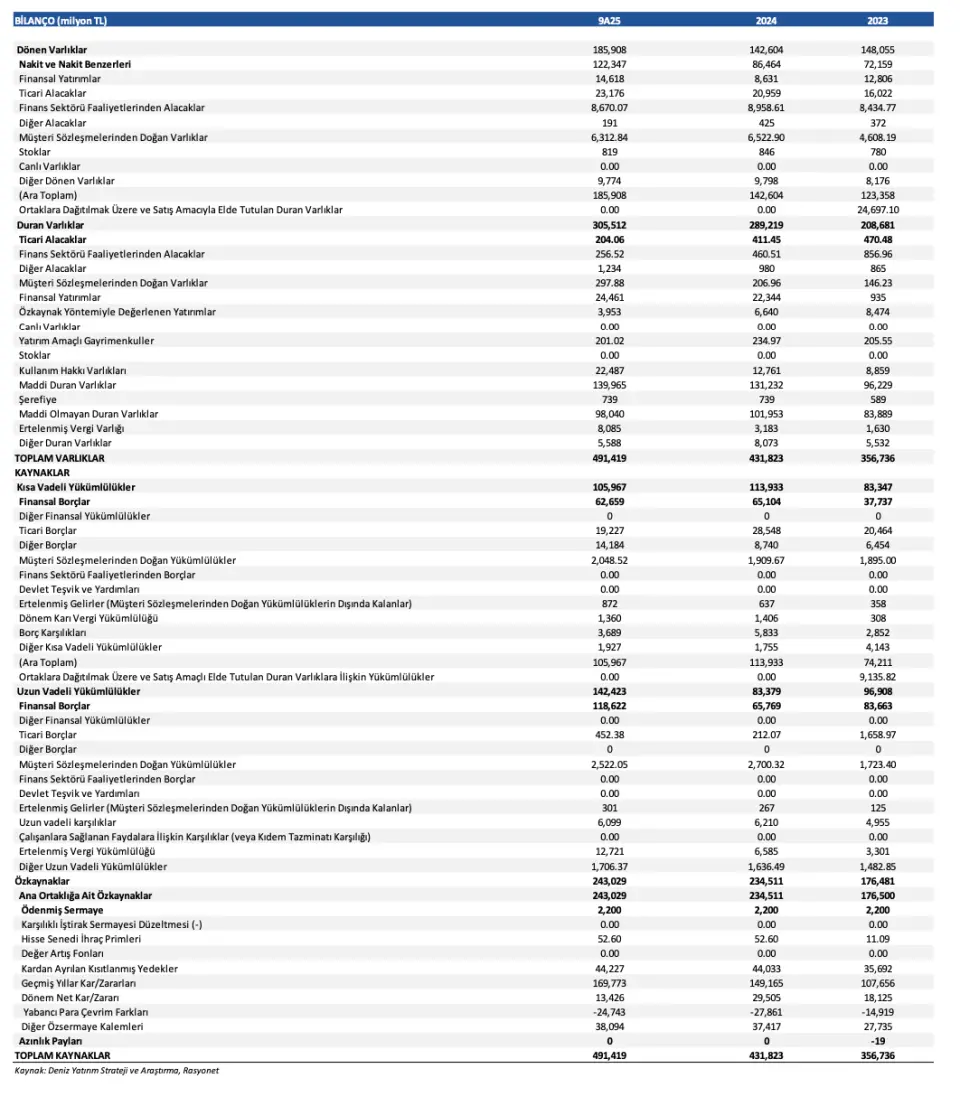 - "2025 yılı için beklentilerimiz, Şirket’in, 241,3 milyar TL ciro, 103,8 milyar TL FAVÖK ve 18,5 milyar TL net kar elde etmesi yönünde. Bu paralelde, 4Ç25’e dair ilk görüşlerimiz, 2025 yılında gördüğümüz rekabetin son çeyrekte de etkili olmasını beklemekle beraber, reel büyümenin devam etmesi ile Şirket’in 61,7 milyar TL ciro elde etmesi yönünde. Yaklaşık %40 FAVÖK marjı ile 24,4 milyar FAVÖK rakamına ulaşırken, net kar tahminimiz 4,4 milyar TL olarak şekillenmekte."