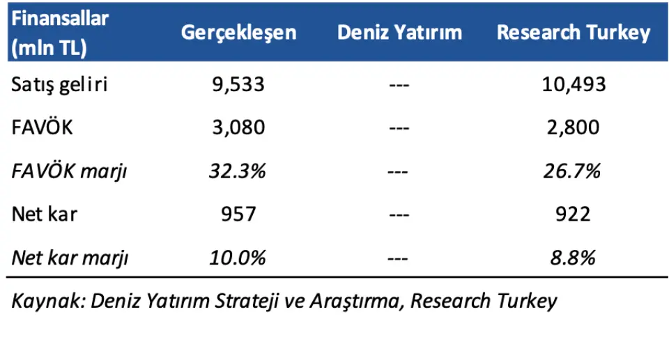 "FAVÖK 3Ç25'te yıllık %35 artışla 3.080 milyon TL seviyesinde gerçekleşirken, FAVÖK marjı 11,4 puan artışla %32,3 oldu. Satış gelirlerindeki geri çekilmeye karşın, brüt karlılıkta gözlenen %31’lik yükseliş, FAVÖK ve FAVÖK marjını destekledi. 9A25’te yurt dışı operasyonlarının FAVÖK’e katkısı %78 ile yüksek seyrini korudu (9A24: %78)."
