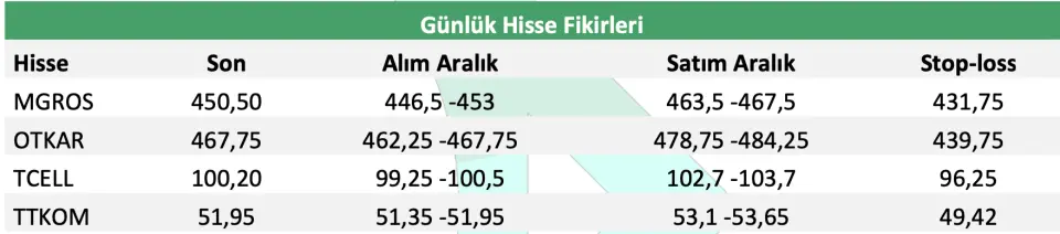 - "16 Ekim 2025 tarihinde yapılacak 5G ihalesinde telekom sektörüne kısa vadeli bir hareketlilik getirmesini öngörüyoruz ve ihaleye katılacak Türk Telekom ve Turkcell’i, Eylül'de askeri araç teslimi artış gösteren Otokar’ı ile gıda fiyatlarında artışın olumlu etkilenmesini beklediğimiz Migros’u günlük hisse fikirlerine dahil ediyoruz."