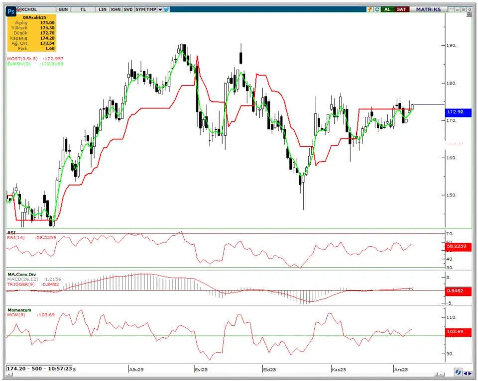 nedeniyle KCHOL hissesinde 176,00TL ve ardından 178,00TL seviyelerine doğru yükseliş beklenebilir.