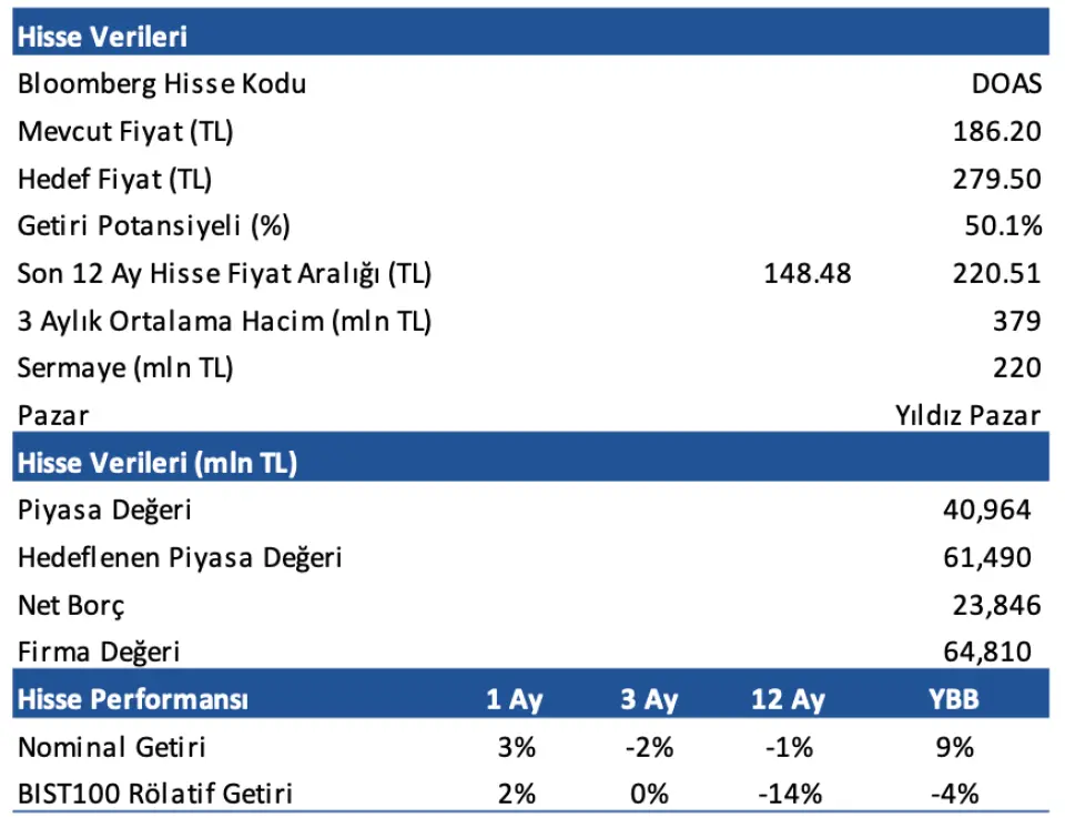 - "DOAS, yıl başından itibaren BIST 100 Endeksi’nin %4 gerisinde performans göstermiştir. Geriye dönük 12 aylık verilere göre hisse 6,2x F/K ve 4,2x FD/FAVÖK çarpanlarıyla işlem görmektedir."