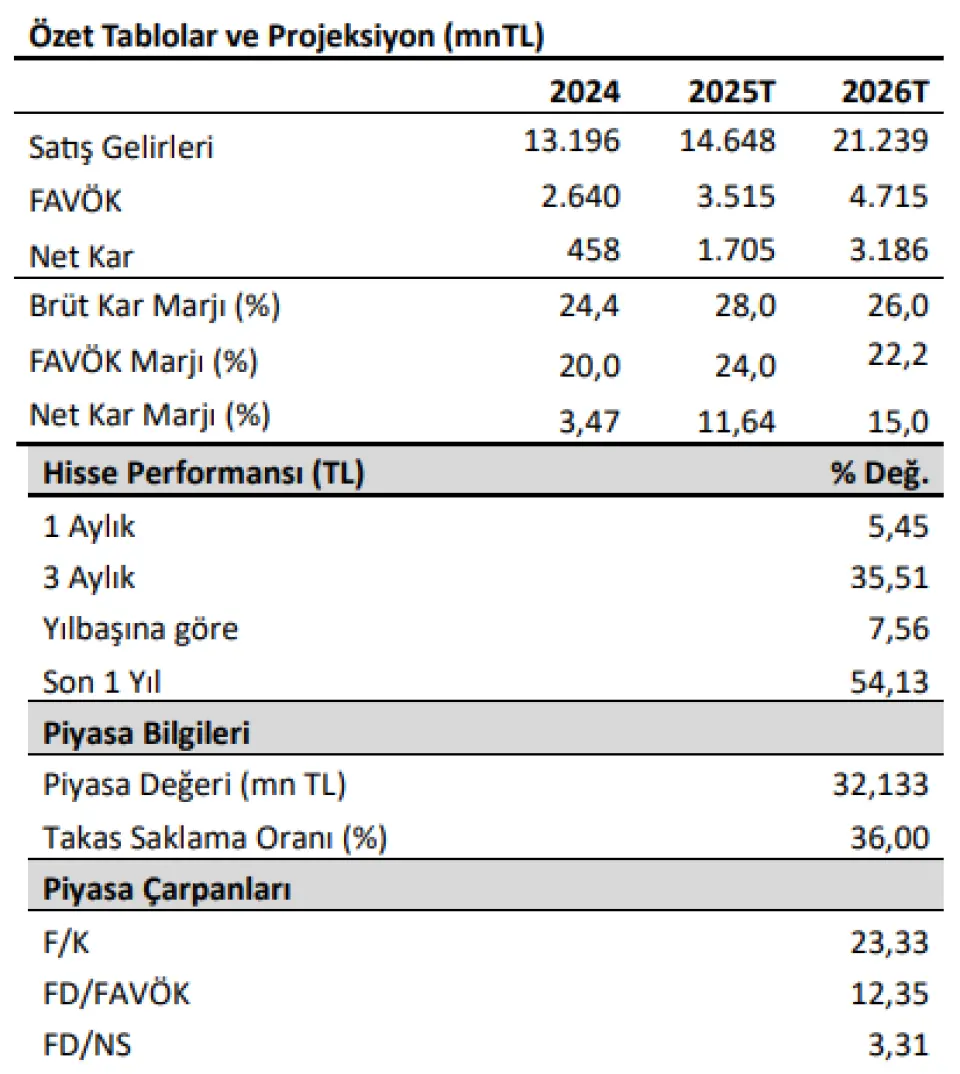 Şirketin Hot-30 programı kapsamında devam eden yatırımları bulunuyor. Bu yatırımlar çerçevesinde 2028 yılına kadar üretim kapasitesinin 5 GWh seviyesine yükseltilmesi hedefleniyor. Tamamlanan ve devam eden yatırımların etkisiyle, bu yıl içinde de pozitif seyrin korunmasını bekliyoruz. Şirketin ABD pazarına yönelik hedeflerine ek olarak, yurt içinde hali hazırda güçlü bir konumda olması da riskleri sınırlayan önemli bir unsur olarak öne çıkıyor. Artan gümüş fiyatları nedeniyle maliyetlerde yükseliş yaşanabilir fakat ABD’de yapay zeka harcamalarıyla birlikte enerji ihtiyacının artacağı senaryo için önemli bir fırsat sunabileceğini düşünüyoruz.
