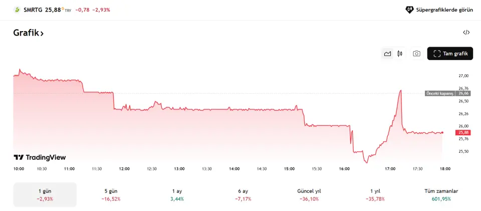 Kısa vadeli performans da zayıf seyrediyor. Son 5 gün içerisinde hissede yaklaşık %16 oranında düşüş yaşandı. Son işlem gününde ise hisse %3 değer kaybıyla 25 TL seviyesine geriledi.