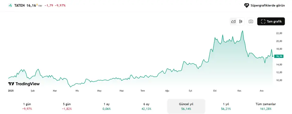 Buna karşın uzun vadeli performans farklı bir tablo ortaya koyuyor. Şirket hissesi son 1 yıllık dönemde yaklaşık %56 oranında değer kazandı. Halka arzdan bu yana bakıldığında ise Tatlı Pınar Enerji, yatırımcısına yaklaşık %161 oranında getiri sağladı. Bu performans, yatırım yapılan tutarın 2,5 katın üzerine çıktığını gösteriyor.