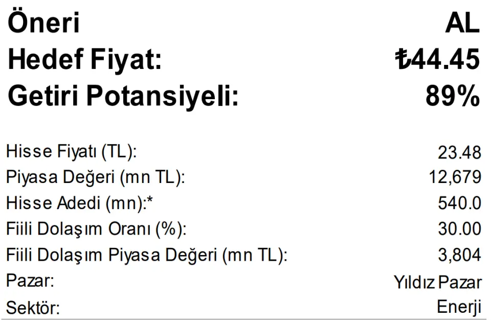 Enerji Şirketi için %89 Getiri Potansiyelli Hedef Fiyat Verildi!