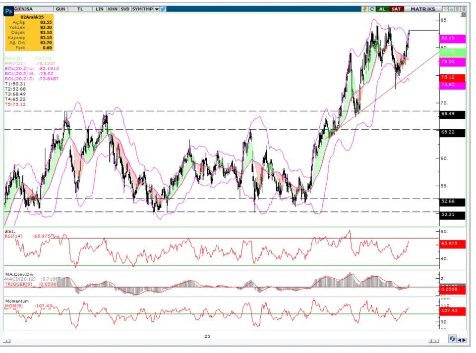 nedeniyle ENJSA hissesinde 84,00TL ve ardından 84,80TL seviyelerine doğru yükseliş söz konusu olabilir.