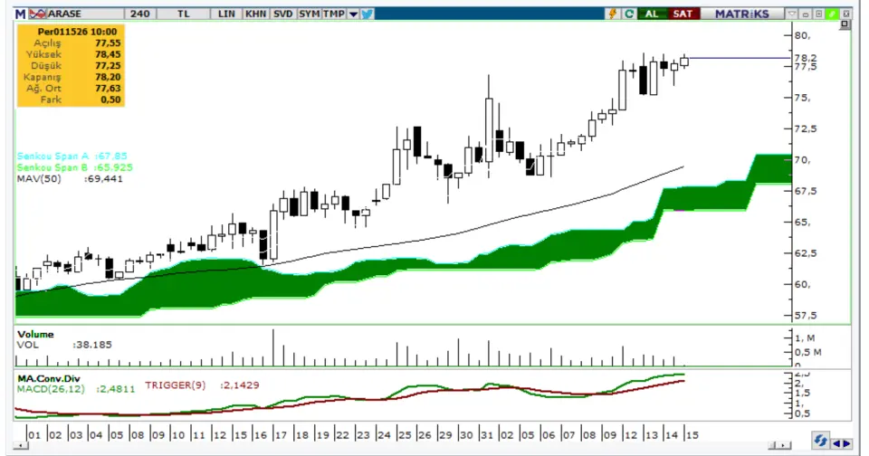 nedeniyle ARASE hissesinde 79,25TL ve daha sonra 80,05TL seviyelerine doğru yükseliş kaydedilebilir.