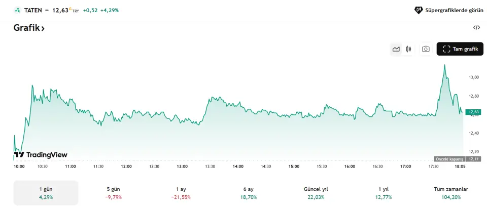 Taten, halka arz sürecinde yatırımcı ilgisini üzerine çeken şirketler arasında yer almıştı. İlk günlerdeki hareketlilikle dikkat çeken hisse, ilerleyen dönemde bu ivmeyi koruyamadı. Son fiyatlamalar, özellikle kısa vadede beklentilerin karşılanamadığını gösteriyor.