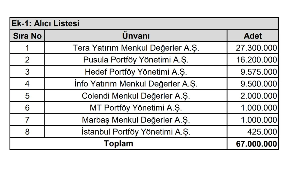 Satışa konu olan payların dağılımı ise şu şekilde: