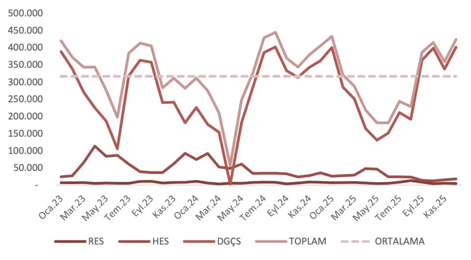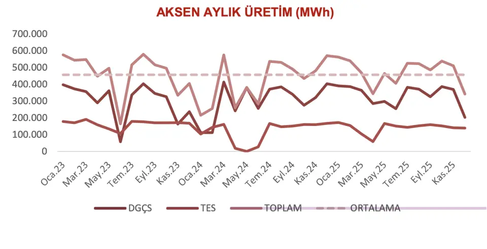 - "2025 Aralık ayına ait üretim verilerine bakıldığında, üretim 2024 yılının aynı ayına göre %40, 2023 yılının Aralık ayına kıyasla ise %15,54 azalarak 341.774 MWh olmuştur."