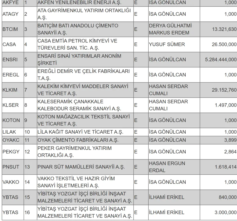 Bu işleme konu olan bir şirket oldu. Bu şirket, ENSARİ SINAİ YATIRIMLAR ANONİM ŞİRKETİ olurken, çeşitli yatırımcılar E tipi işlem görmeyen paylarının bir miktarını borsada işlem gören tipe dönüştürmek için başvuru yaptı.