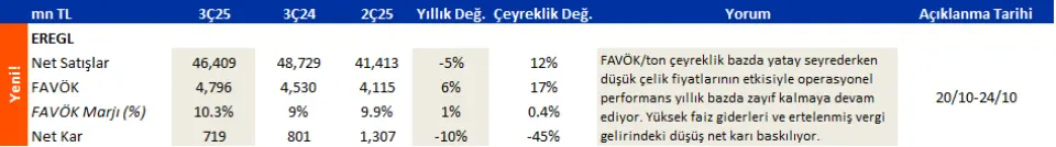 İş Yatırım, EREGL için 3. çeyrek bekelntilerini yayınladı. Aracı kurumun analizi aşağıdaki gibi oldu: