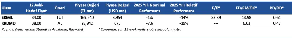 Deniz Yatırım EREGL ve KRDMD Hissesi Hedef Fiyat