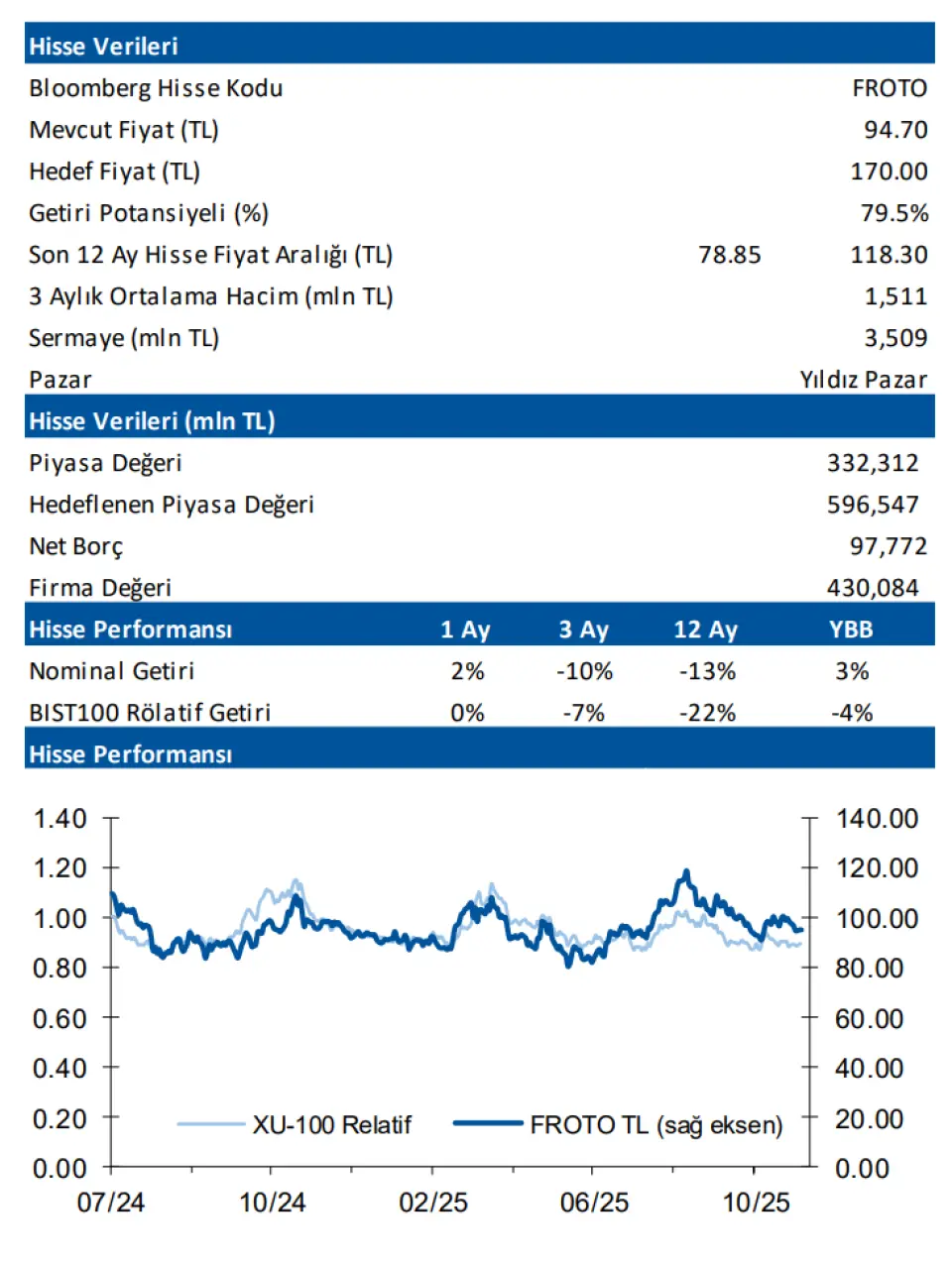 FROTO için 170 TL'lik Hedef Fiyat Veridi! %79,5'lik Getiri Potansiyeli!