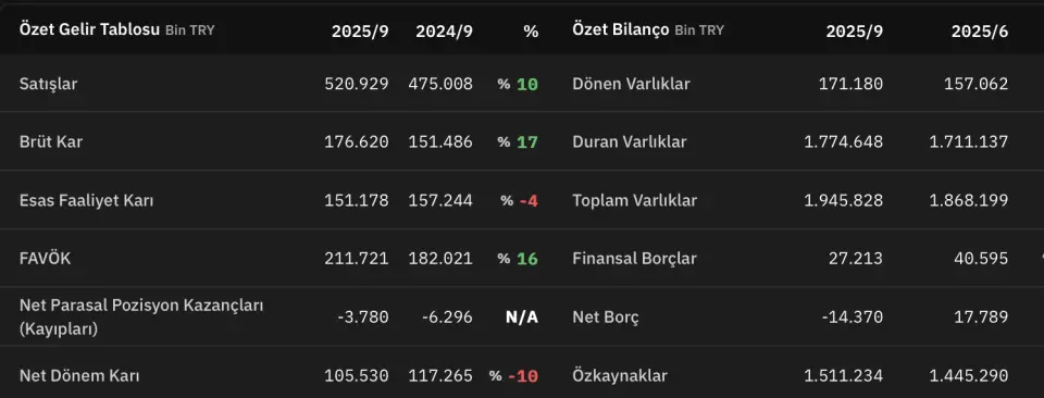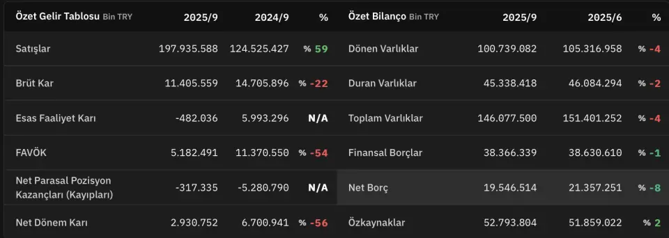 - "Tofaş'ın 2025 yılı 3. çeyreğinde duyurmuş olduğu finansallarda geçen yıla göre güçlü ciro performansı dikkat çekti. Stellantis etkisiyle beraber artan ithal araç satış gelirleri, cironun yıllık bazda %205 oranında artış göstermesinde belirleyici oldu. Bu performansa ek olarak opersonel maliyetlerin sınırlı kalmasını olumlu karşılıyoruz."