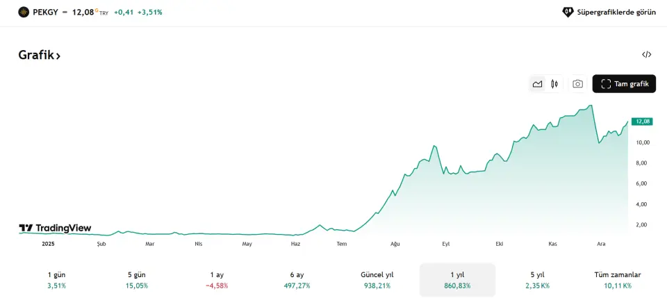 Son günlerde ise hissede dikkat çeken bir fiyat hareketi yaşandı. Dip seviyelerden başlayan yükselişle birlikte Peker GYO hissesi kısa süre içinde yaklaşık %900 oranında değer kazandı. Bu yükseliş, hissede uzun süredir görülmeyen bir hareketlilik oluşturdu.