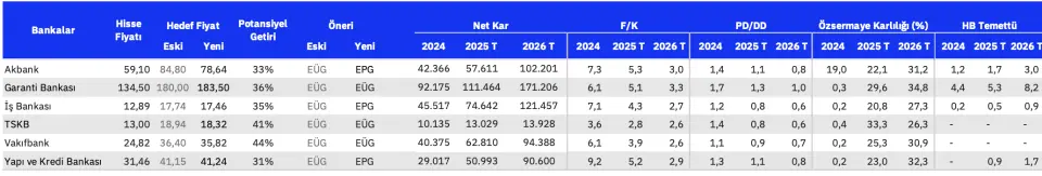 Gedik Yatırım, bankacılık sektöründe bulunan 6 hisse için hedef fiyatını duyururken 6 hisse için de hisse tavsiyesini açıkladı. Banka hisselerine ait net