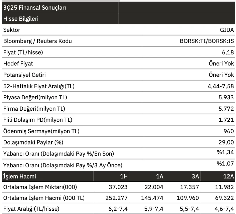 Aracı kurum, şeker şirketinin 2025 yılı 3. çeyrek finansal sonuçlarını analiz etti. Buna göre; BORSK'nin net karı geçen senenin aynı çeyreğine göre %127,35 arttı.