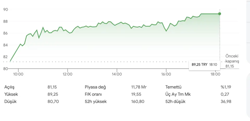 Son zamanlarda hissede yaşananlar yatırımcıları şaşırtmaya devam ediyor. Şirket TERA ile iş birliği görüşmeleri yaptığını açıklamasının ardından TAVAN'a kilitlenmişti. Sonrasında şirket, geri alım programını durduğunu bildiriyor ve hisse fiyat değişimine uğruyor. GIPTA son işlem gününde de 89,25 TL'yi gördü ve TAVAN kapattı.