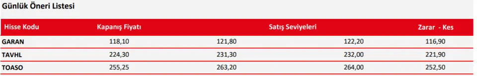 Ziraat Yatırım'dan Günlük Öneri Listesi!