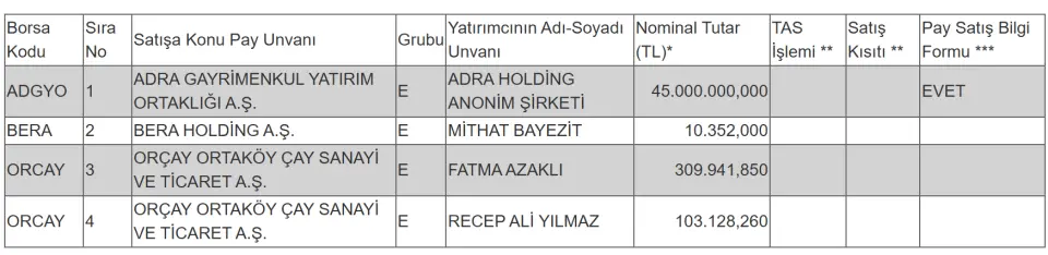 Bu işleme konu olan bir şirket oldu. Bu şirket, ADRA GAYRİMENKUL YATIRIM ORTAKLIĞI A.Ş. olurken, çeşitli yatırımcılar E tipi işlem görmeyen paylarının bir miktarını borsada işlem gören tipe dönüştürmek için başvuru yaptı.