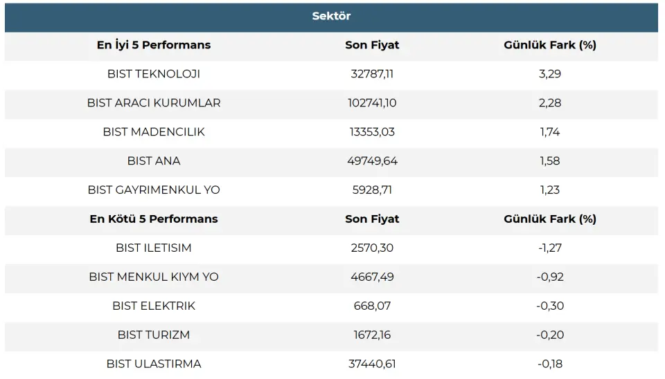 Sektör görünümlerinde ilk yarıda genel olarak pozitif seyrin hakim olduğu görülmektedir. En iyi performans sergileyen sektör(ler) Teknoloji, Aracı Kurumlar ve Madencilik iken baskı görenlerde İletişim, Menkul Kıymet Yatırım Ortaklığı ve Elektrik dikkat çekmektedir.