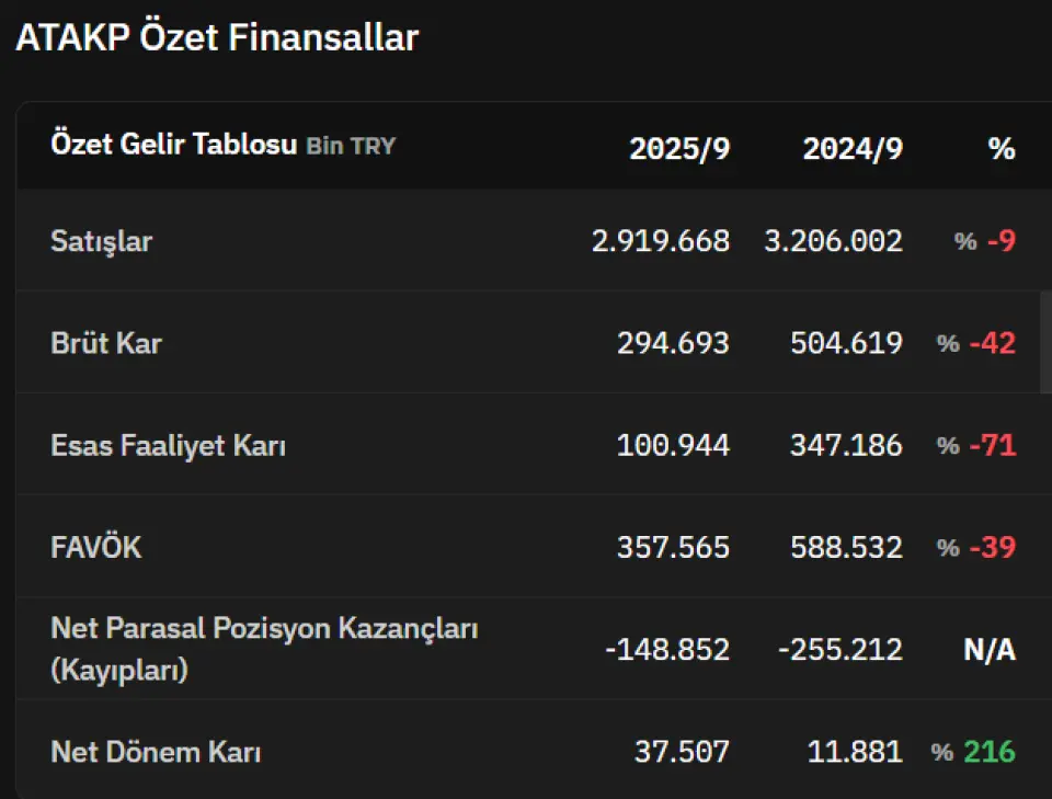 ALB Yatırım ATAKP 2025 3. Çeyrek Finansal Sonuç Değerlendirmesi