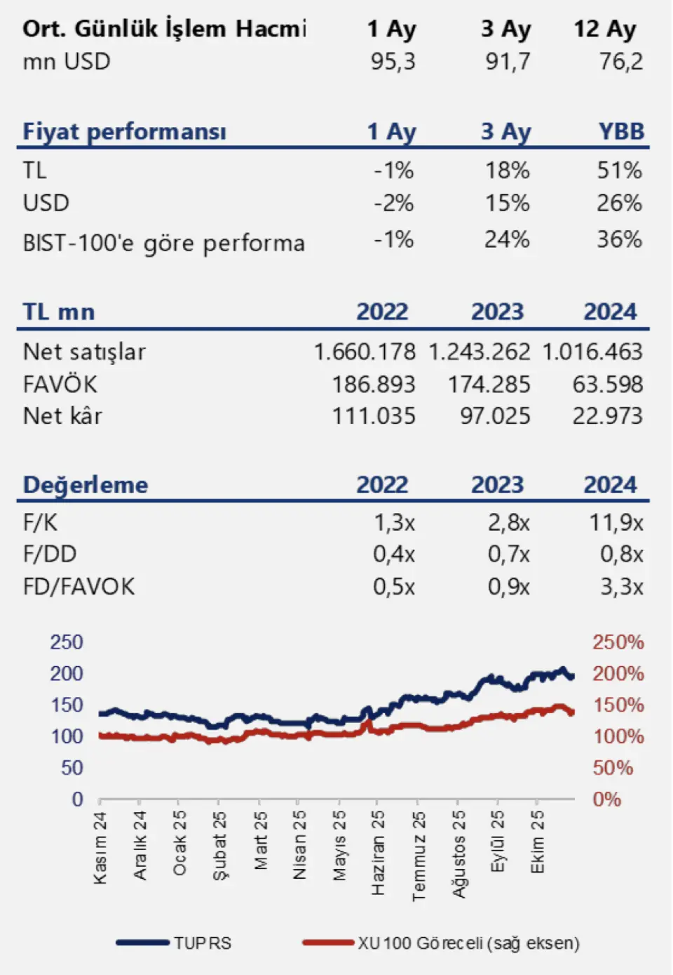 Tacirler Yatırım TUPRS Hedef Fiyat ve Hisse Tavsiyesi