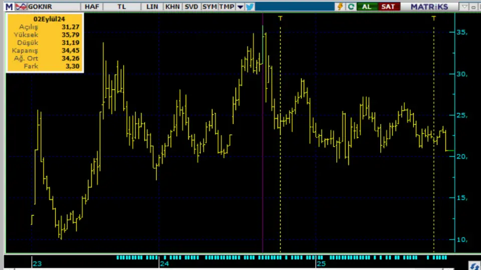 GOKNR 2023 yılının Mart ayında borsada işlem başlamıştı. Hisse 11 TL den işlem başladı ve ilk 1,5 yıl içinde 35,79 TL zirve fiyata kadar prim yaptı ve kazandırdı. Ancak geçtiğimiz yıl Eylül ayında düşen trende giren hisse, o gün bu gündür toparlanamadı.