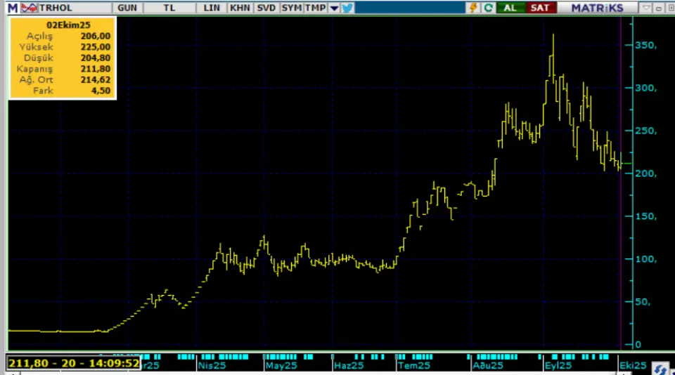 Borsada TRHOL hissesi ise konuşulmayacak gibi değil. Hisse henüz Şubat ayında 15 Lira idi. Eylül ayı başında yani 6 ay sonra hisse %2313 primlenerek 363 Lira fiyata kadar yükseldi. Böyle bir prim borsada çok nadir görülür.