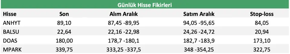 Hisse Fikirleri Listesinde ANHYT, BALSU, DOAS ve MPARK Hisseleri Var