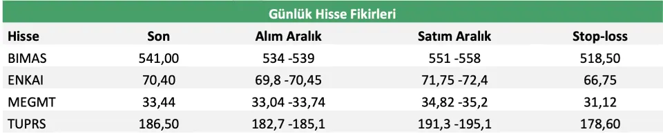 Hisse fikri arayanlar için BIMAS, ENKAI, MEGMT ve TUPRS hisseleri paylaşıldı. Hisselerin paylaşılma sebepleri de yatırımcılara duyuruldu. Yatırım stratejileri dikkat çekti.