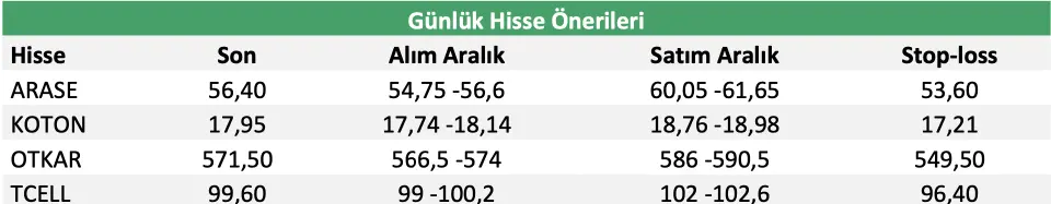 Hisse Önerileri Listesinde ARASE, KOTON, OTKAR ve TCELL Yer Aldı!
