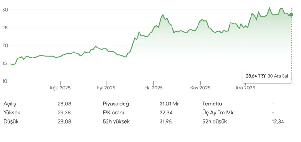 CWENE hissesi yatırımcısını en fazla son 6 ayda memnun etti. Önceki yıl bu zamanlar yani 30 Aralık 2024 tarihinde hisse 21,18 TL'den işlem görüyordu. 1 yıl içinde hisse %36'ya yakın değer kazandı. Yılbaşından beri de CWENE %35 civarı değerlendi. Son 6 ayda ise %99'a yakın değer kazanımı elde eden hisse, son 1 ayda da %13'e yakın primlendi. Son 5 günde ise düşüşe geçen hisse %%9'a yakın bir değer kaybı yaşadı. CWENE hissesi 30 Aralık 2025 tarihli seansa da 28,74 TL'den başladı.Para ajansından yeni uygulama, yatırımcıların mağdur olduğu konular hakkında Finyad Finansal Yatırımcılar Derneği tarafından hukuki işlemlerin başlatılabilmesi ve ajansımızın konu hakkında haber yapabilmesi için whatsapp ihbar hattı kurulmuştur. Aşağıdaki linki tıklayarak telefonumuzu kaydedin. Hem son dakika ve önemli haberler cebinize gelsin. Hem de bizimle iletişime geçebilirsiniz . Para ajansı her zaman yanınızda.