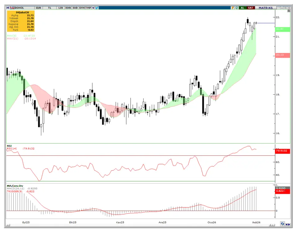nedeniyle DOHOL hissesinde 22,00TL ve ardından 22,30TL seviyelerine doğru yükseliş söz konusu olabilir.
